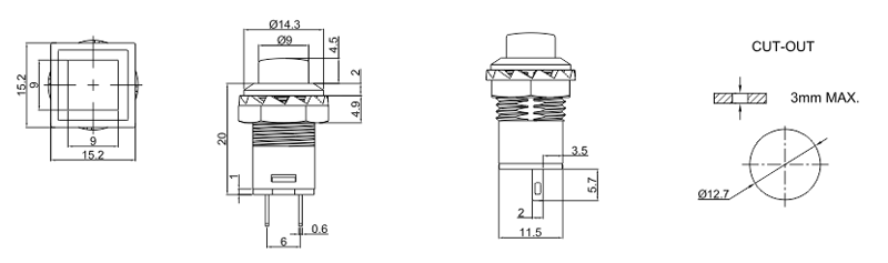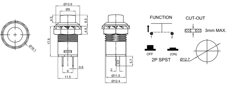 额定电流和电压:3A/125VAC 1.5A/250VAC