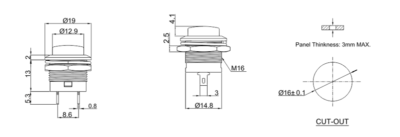 产品大小:安装孔16mm
